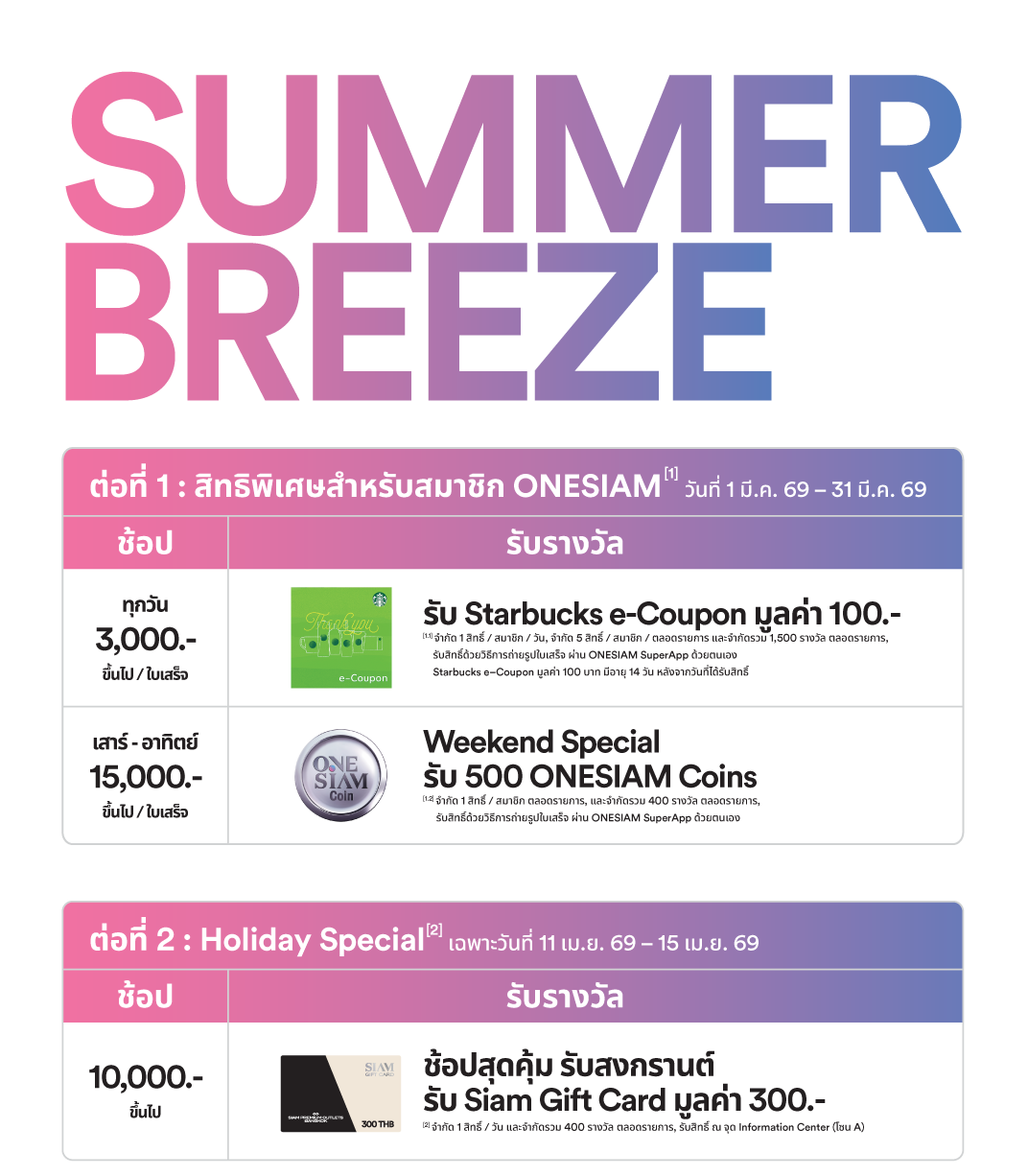 สิทธิพิเศษเฉพาะลูกค้า ONESIAM