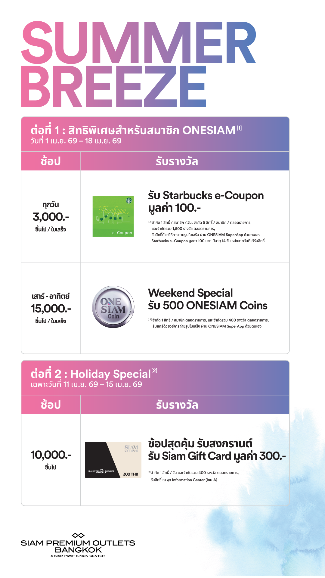 สิทธิพิเศษเฉพาะลูกค้า ONESIAM