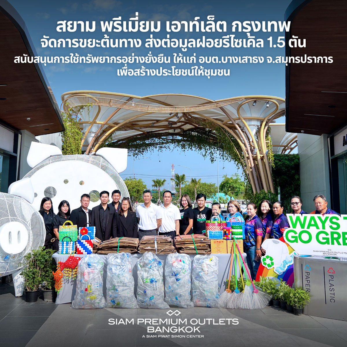 สยาม พรีเมี่ยม เอาท์เล็ต กรุงเทพ เดินหน้าจัดการขยะต้นทาง ส่งต่อมูลฝอยรีไซเคิล 1.5 ตัน